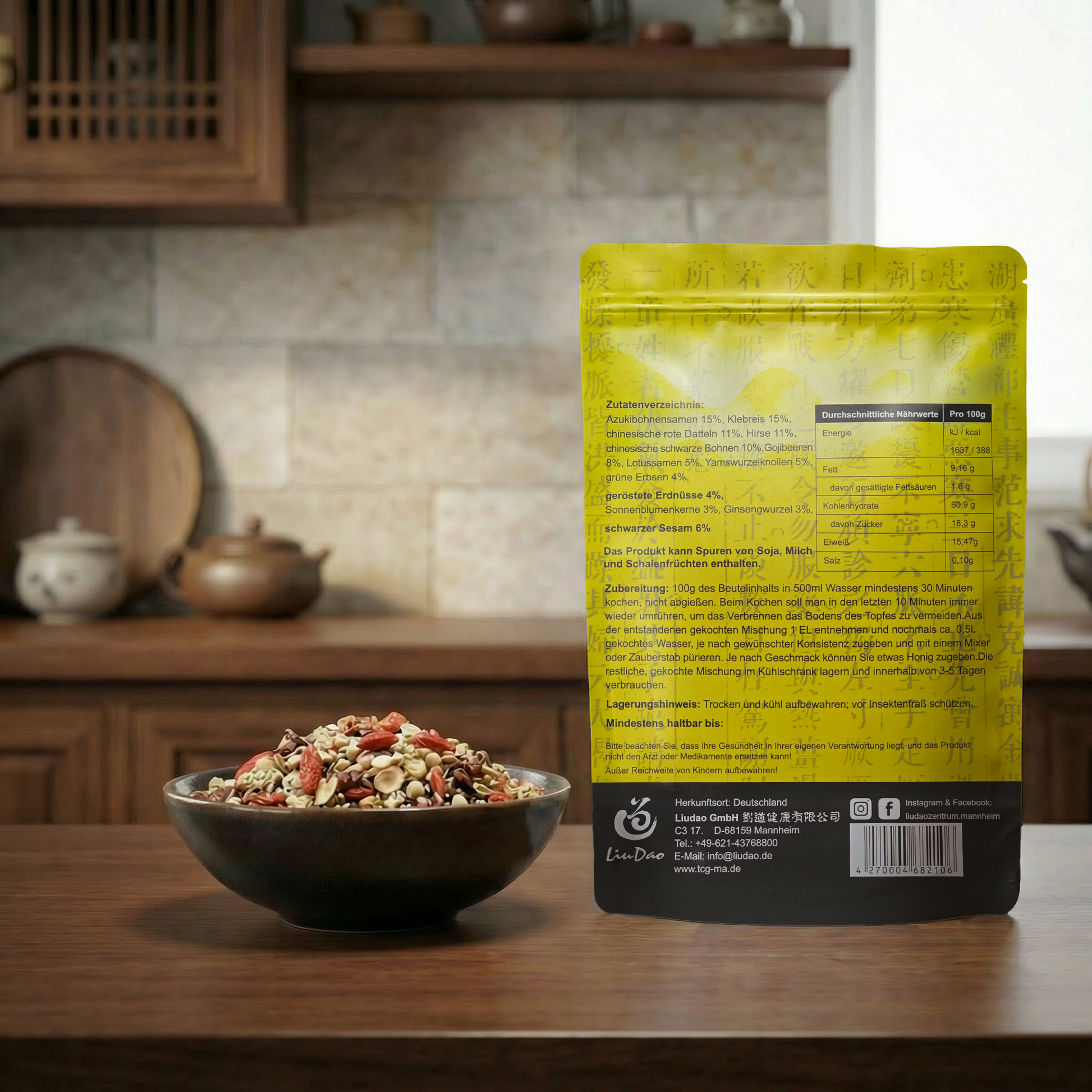 Unser Babao-Tee ist eine traditionelle Mischung aus sorgfältig ausgewählten Zutaten, die nach jahrhundertealten chinesischen Rezepturen zusammengestellt wurde. Mit nährstoffreichen Zutaten wie Azukibohnen, Gojibeeren und Lotussamen bietet dieser Tee nicht nur ein wohltuendes Geschmackserlebnis, sondern auch zahlreiche gesundheitliche Vorteile. Gojibeeren sind reich an Antioxidantien, während chinesische rote Datteln durch ihren Eisengehalt die Vitalität fördern.